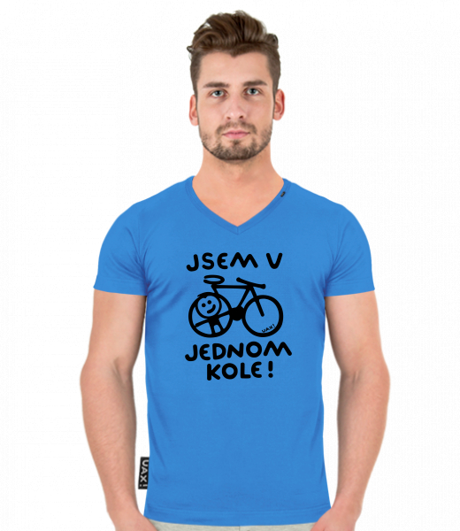 Pánské tričko SLIM FIT s výstřihem do V pro muže s potiskem 1362 JSEM V JEDNOM KOLE v barvě CAPRI BLUE
