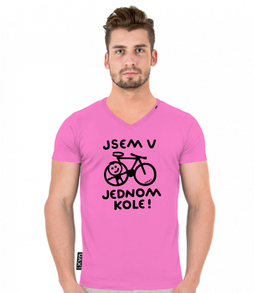 Pánské tričko SLIM FIT s výstřihem do V pro muže s potiskem 1362 JSEM V JEDNOM KOLE v barvě CLASSIC PINK