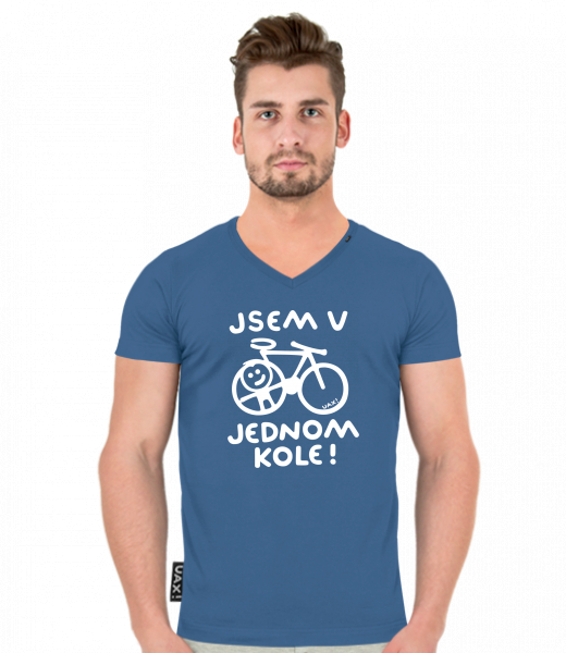 Pánské tričko SLIM FIT s výstřihem do V pro muže s potiskem 1362 JSEM V JEDNOM KOLE v barvě MOONLIGHT BLUE