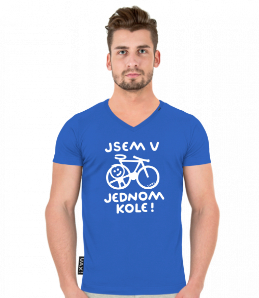 Pánské tričko SLIM FIT s výstřihem do V pro muže s potiskem 1362 JSEM V JEDNOM KOLE v barvě ROYAL BLUE
