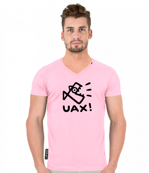 Pánské tričko SLIM FIT s výstřihem do V pro muže s potiskem 1364 LOGO UAX! 2023 v barvě BABY PINK