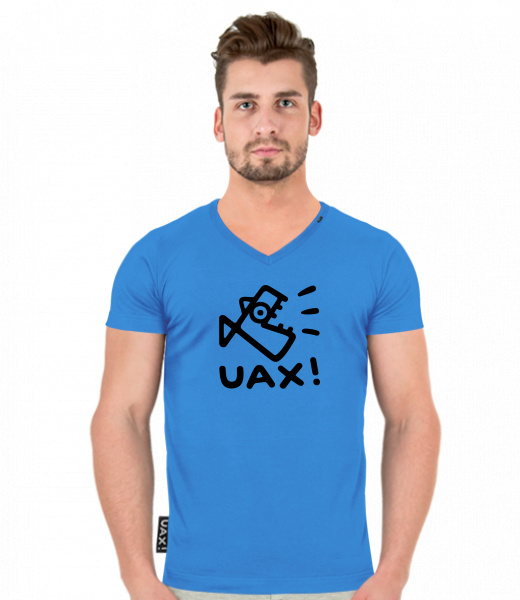 Pánské tričko SLIM FIT s výstřihem do V pro muže s potiskem 1364 LOGO UAX! 2023 v barvě CAPRI BLUE