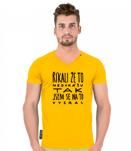 Pánské tričko SLIM FIT s výstřihem do V pro muže s potiskem 1366 ŘÍKALI ŽE TO NEDOKÁŽU TAK JSEM SE NA TO VYSRAL v barvě GOLDEN CREAM