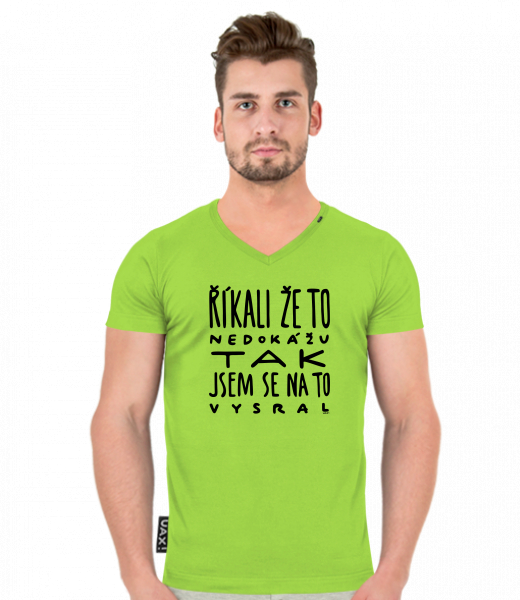 Pánské tričko SLIM FIT s výstřihem do V pro muže s potiskem 1366 ŘÍKALI ŽE TO NEDOKÁŽU TAK JSEM SE NA TO VYSRAL v barvě PARROT GREEN