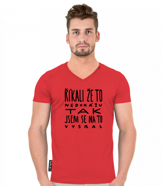 Pánské tričko SLIM FIT s výstřihem do V pro muže s potiskem 1366 ŘÍKALI ŽE TO NEDOKÁŽU TAK JSEM SE NA TO VYSRAL v barvě RED
