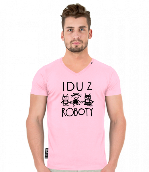 Pánské tričko SLIM FIT s výstřihem do V pro muže s potiskem 1370 IDU Z ROBOTY v barvě BABY PINK