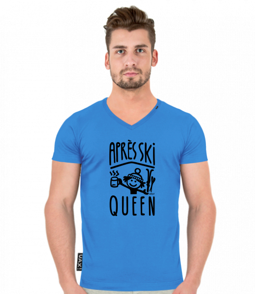 Pánské tričko SLIM FIT s výstřihem do V pro muže s potiskem 1371 APRÉS SKI QUEEN v barvě CAPRI BLUE