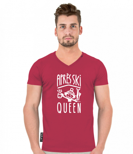 Pánské tričko SLIM FIT s výstřihem do V pro muže s potiskem 1371 APRÉS SKI QUEEN v barvě CHILLY PEPPER RED