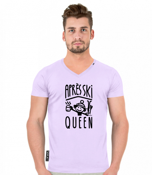 Pánské tričko SLIM FIT s výstřihem do V pro muže s potiskem 1371 APRÉS SKI QUEEN v barvě LAVENDER