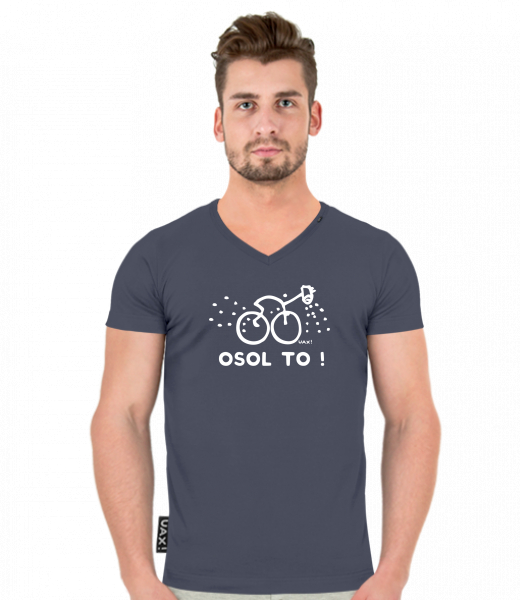 Pánské tričko SLIM FIT s výstřihem do V pro muže s potiskem 1374 OSOL TO v barvě GRAY INK