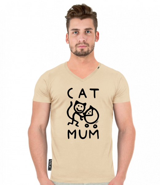 Pánské tričko SLIM FIT s výstřihem do V pro muže s potiskem 1375 CAT MUM v barvě CARAMEL