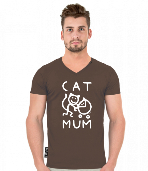 Pánské tričko SLIM FIT s výstřihem do V pro muže s potiskem 1375 CAT MUM v barvě CHESTNUT