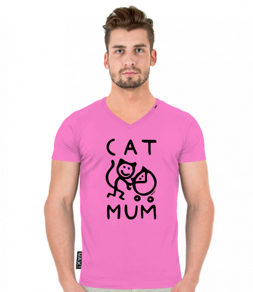 Pánské tričko SLIM FIT s výstřihem do V pro muže s potiskem 1375 CAT MUM v barvě CLASSIC PINK
