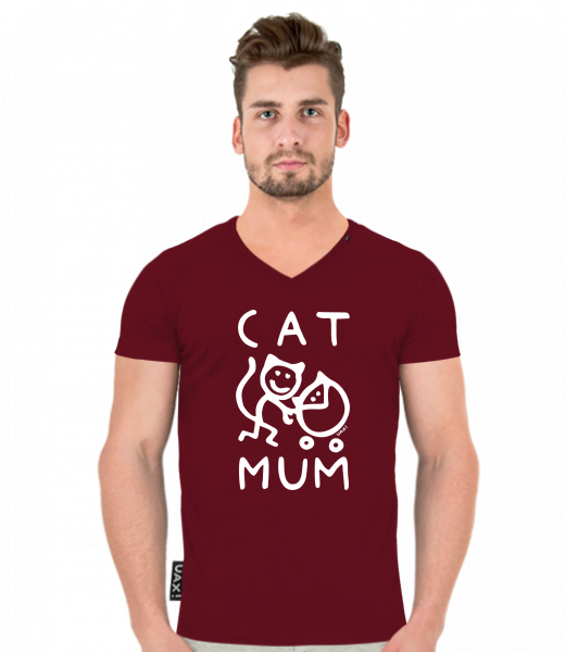 Pánské tričko SLIM FIT s výstřihem do V pro muže s potiskem 1375 CAT MUM v barvě DARK RED
