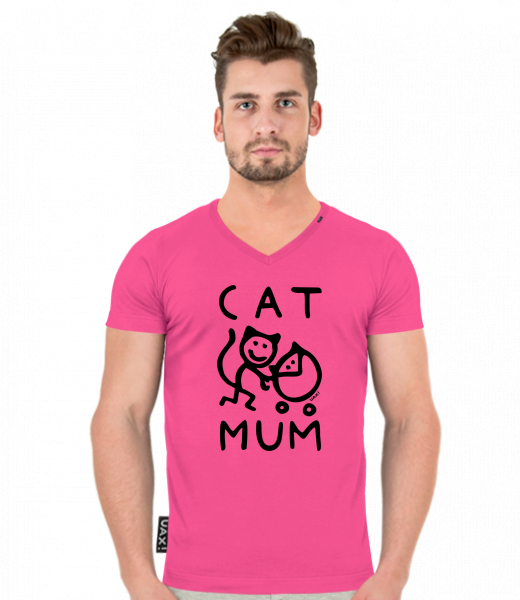 Pánské tričko SLIM FIT s výstřihem do V pro muže s potiskem 1375 CAT MUM v barvě INDIAN LILA