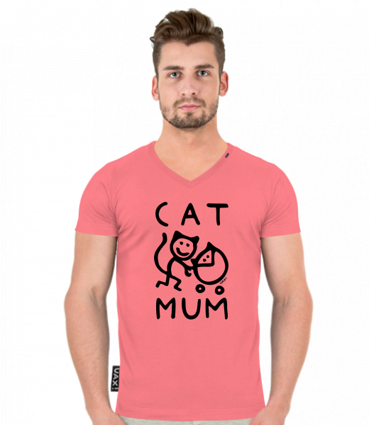 Pánské tričko SLIM FIT s výstřihem do V pro muže s potiskem 1375 CAT MUM v barvě LOSOSOVA