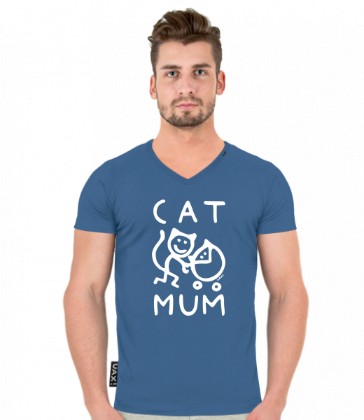 Pánské tričko SLIM FIT s výstřihem do V pro muže s potiskem 1375 CAT MUM v barvě MOONLIGHT BLUE