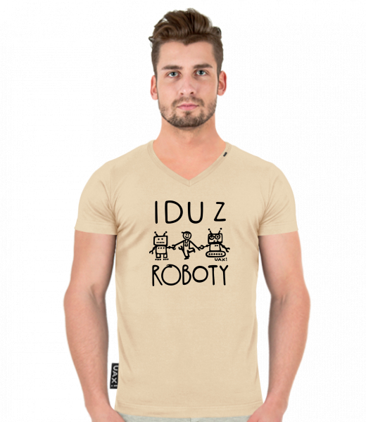 Vyrábíme udržitelné oblečení UAX! - ručně šité v Česku uaxMuži uaxVšechny produktyTričkaTRIČKO SLIM FIT VÝSTŘIH Vpotisk 1377 - IDU Z ROBOTY 2CARAMEL