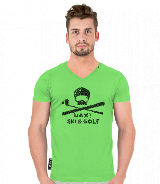 Pánské tričko SLIM FIT s výstřihem do V pro muže s potiskem 1382 SKI AND GOLF AIR v barvě APPLE