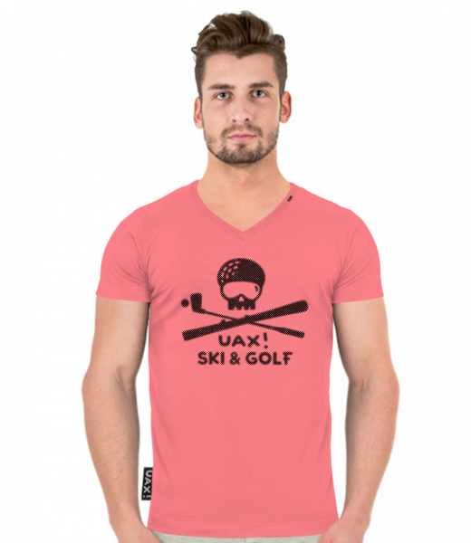 Pánské tričko SLIM FIT s výstřihem do V pro muže s potiskem 1382 SKI AND GOLF AIR v barvě LOSOSOVA