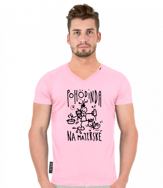 Pánské tričko SLIM FIT s výstřihem do V pro muže s potiskem 1383 POHODINDA v barvě BABY PINK