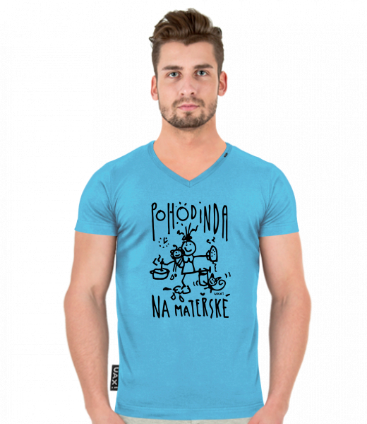 Pánské tričko SLIM FIT s výstřihem do V pro muže s potiskem 1383 POHODINDA v barvě BLUE ATOLL