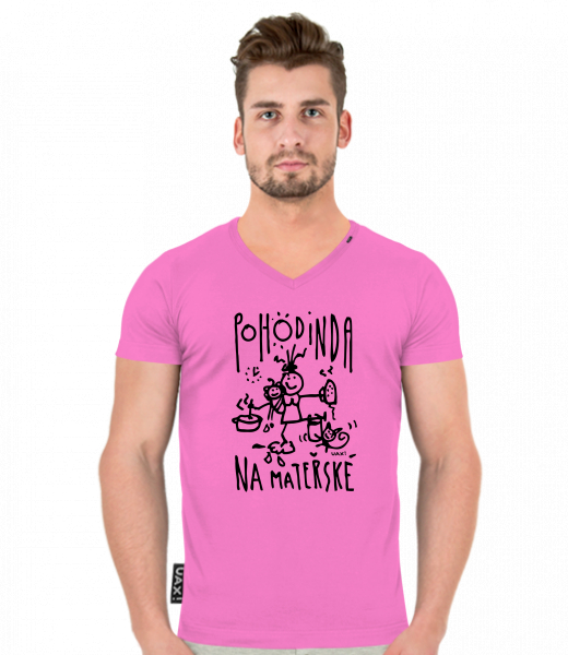 Pánské tričko SLIM FIT s výstřihem do V pro muže s potiskem 1383 POHODINDA v barvě CLASSIC PINK