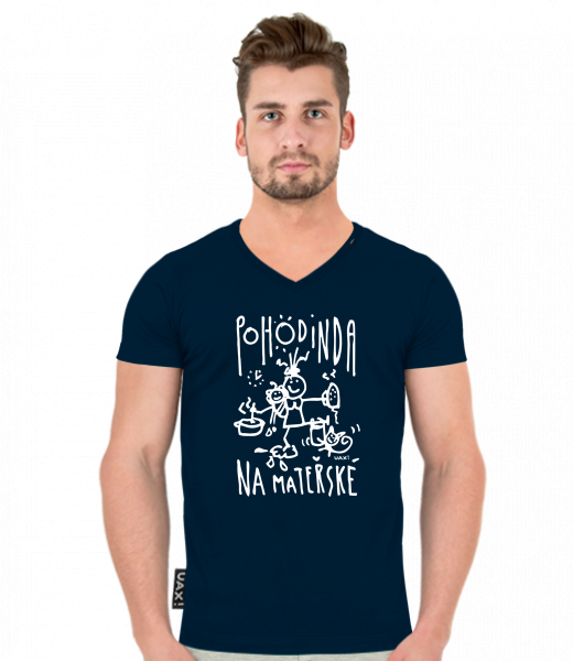 Pánské tričko SLIM FIT s výstřihem do V pro muže s potiskem 1383 POHODINDA v barvě DARK NAVY