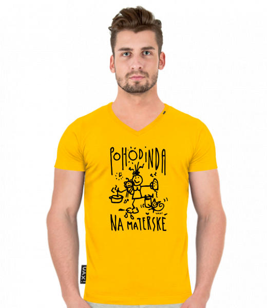 Pánské tričko SLIM FIT s výstřihem do V pro muže s potiskem 1383 POHODINDA v barvě GOLDEN CREAM