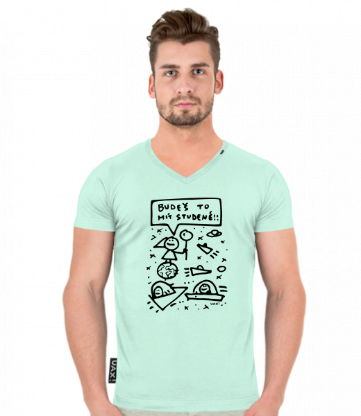 Pánské tričko SLIM FIT s výstřihem do V pro muže s potiskem 1386 BUDEŠ TO MÍT STUDENÉ v barvě MINT
