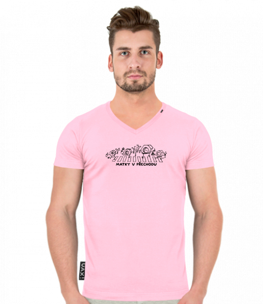 Pánské tričko SLIM FIT s výstřihem do V pro muže s potiskem 1391 MATKY V PŘECHODU v barvě BABY PINK