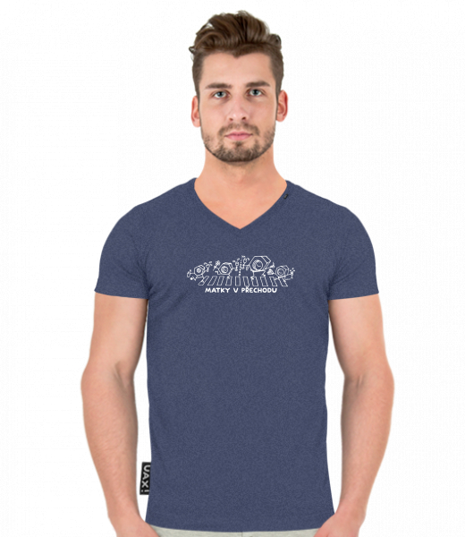 Pánské tričko SLIM FIT s výstřihem do V pro muže s potiskem 1391 MATKY V PŘECHODU v barvě JEANS
