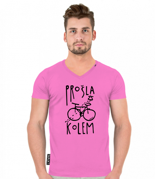 Pánské tričko SLIM FIT s výstřihem do V pro muže s potiskem 1395 PROŠLA KOLEM v barvě CLASSIC PINK