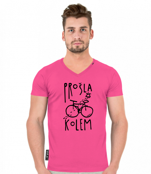 Pánské tričko SLIM FIT s výstřihem do V pro muže s potiskem 1395 PROŠLA KOLEM v barvě INDIAN LILA