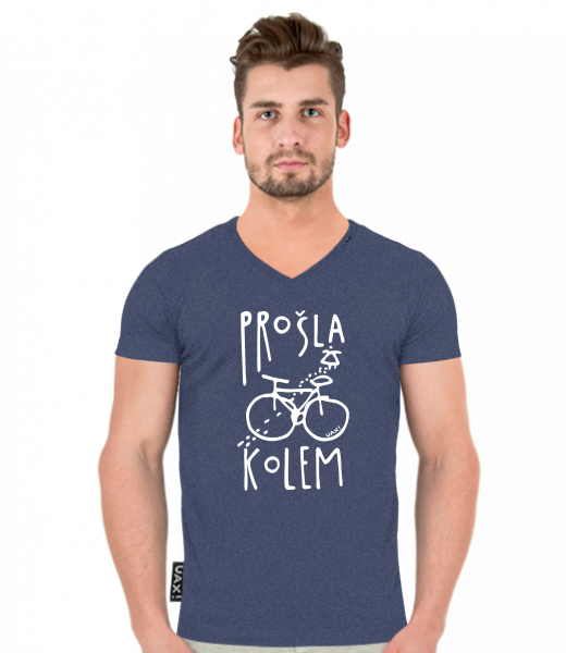 Pánské tričko SLIM FIT s výstřihem do V pro muže s potiskem 1395 PROŠLA KOLEM v barvě JEANS