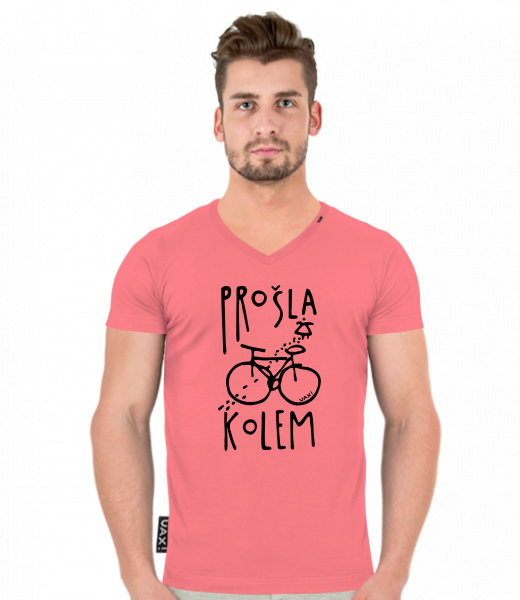 Pánské tričko SLIM FIT s výstřihem do V pro muže s potiskem 1395 PROŠLA KOLEM v barvě LOSOSOVA