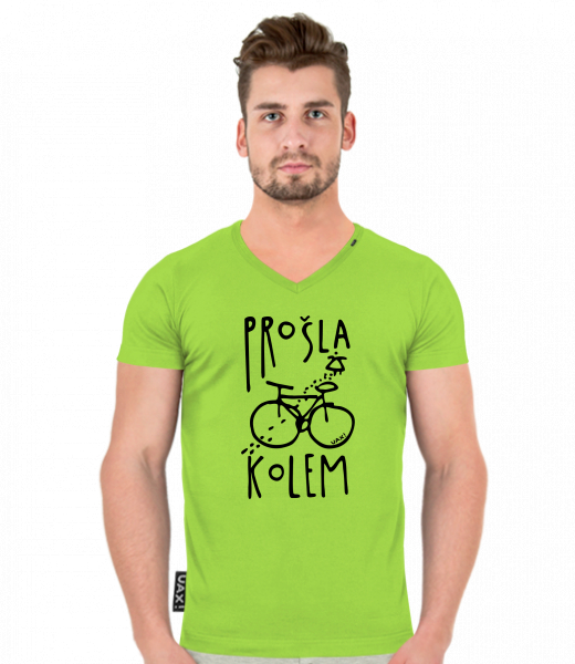 Pánské tričko SLIM FIT s výstřihem do V pro muže s potiskem 1395 PROŠLA KOLEM v barvě PARROT GREEN