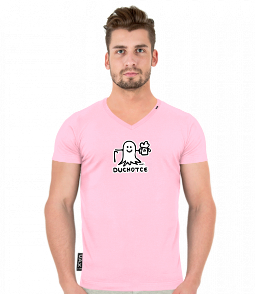 Pánské tričko SLIM FIT s výstřihem do V pro muže s potiskem 1397 DUCHOTCE v barvě BABY PINK