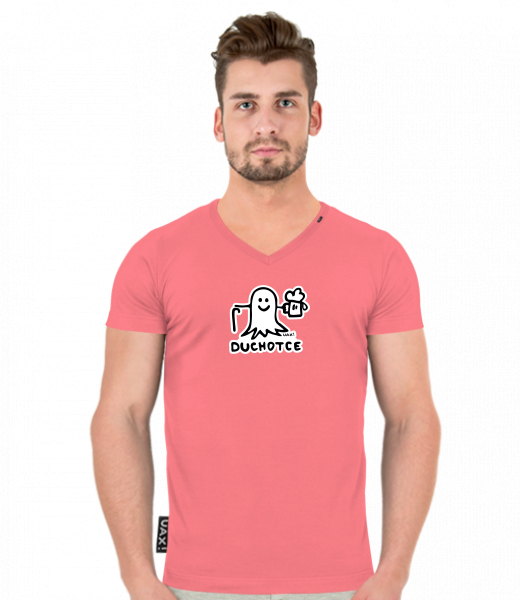 Pánské tričko SLIM FIT s výstřihem do V pro muže s potiskem 1397 DUCHOTCE v barvě LOSOSOVA