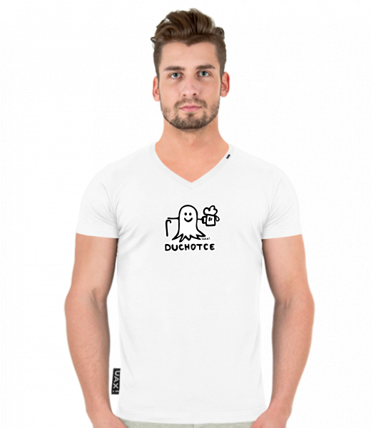 Pánské tričko SLIM FIT s výstřihem do V pro muže s potiskem 1397 DUCHOTCE v barvě WHITE