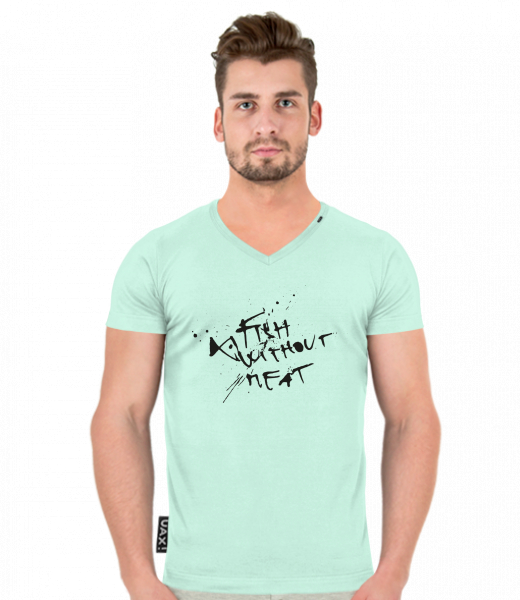 Pánské tričko SLIM FIT s výstřihem do V pro muže s potiskem 178 FWM SPOT v barvě MINT