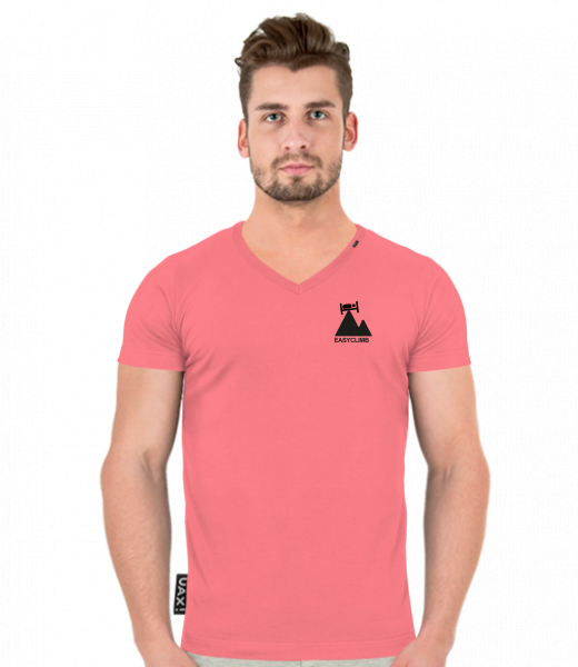 Pánské tričko SLIM FIT s výstřihem do V pro muže s potiskem 22 EASYCLIMB v barvě LOSOSOVA