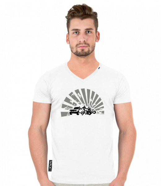 Pánské tričko SLIM FIT s výstřihem do V pro muže s potiskem 244 OFFROAD v barvě WHITE