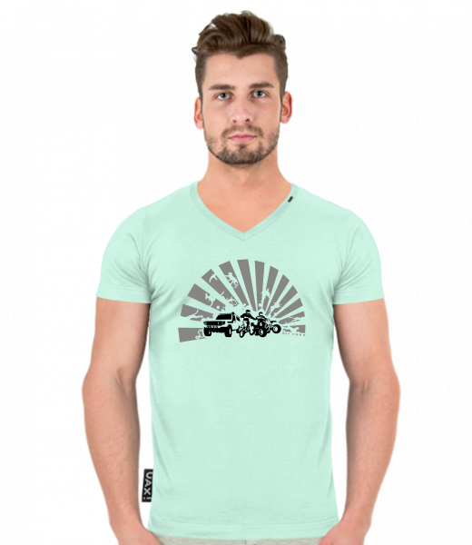 Pánské tričko SLIM FIT s výstřihem do V pro muže s potiskem 244 OFFROAD v barvě MINT
