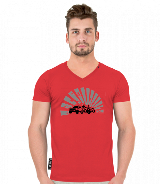 Pánské tričko SLIM FIT s výstřihem do V pro muže s potiskem 244 OFFROAD v barvě RED