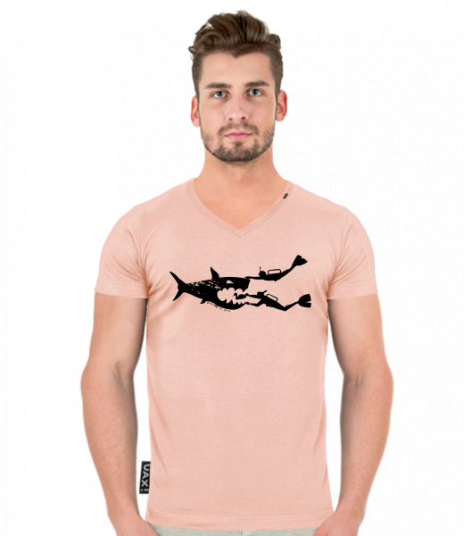 Pánské tričko SLIM FIT s výstřihem do V pro muže s potiskem 252 DIVING IS FUN v barvě PEACH