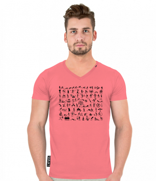 Pánské tričko SLIM FIT s výstřihem do V pro muže s potiskem 300 BESTUPGRADE v barvě LOSOSOVA
