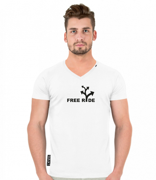 Pánské tričko SLIM FIT s výstřihem do V pro muže s potiskem 344 FREE RIDE v barvě WHITE