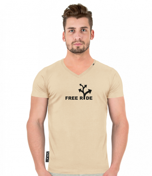 Vyrábíme udržitelné oblečení UAX! - ručně šité v Česku uaxMuži uaxVšechny produktyTričkaTRIČKO SLIM FIT VÝSTŘIH Vpotisk 344 - FREE RIDECARAMEL