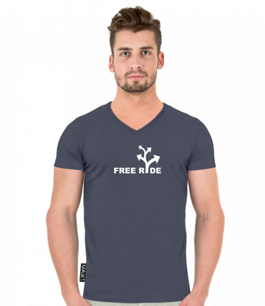 Pánské tričko SLIM FIT s výstřihem do V pro muže s potiskem 344 FREE RIDE v barvě GRAY INK